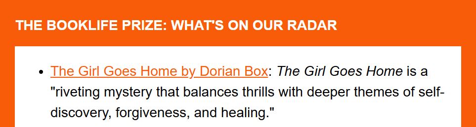 The Publishers Weekly BookLife magazine says The Girl Goes Home (Emily Calby Book 4) is on its radar. Hopefully, that portends of good things in the final judging for the coveted BookLife Prize: